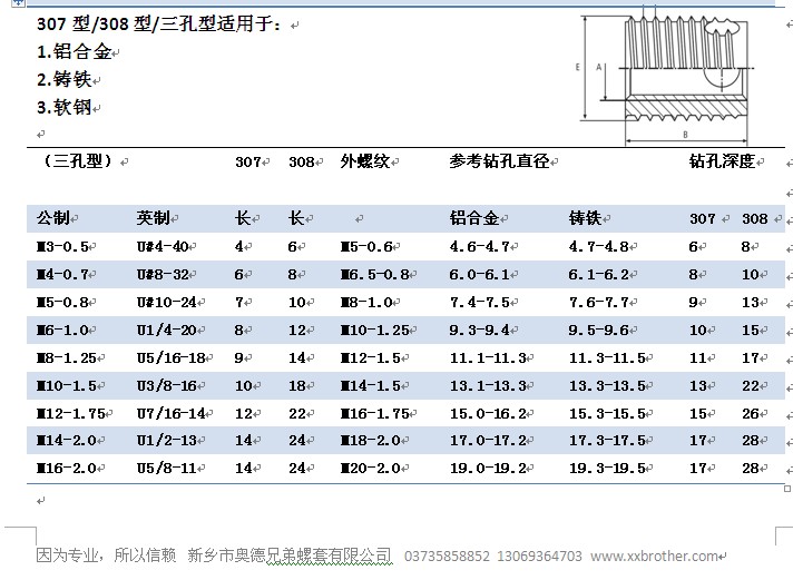台州308型自攻丝套使用影响机器行业当中的作用:台州螺纹护套被认为一种紧固件产品,大概在几年前,当有人提到308型自攻台州丝套的时候会不清楚,然而,随着时间的推移,螺纹护套产品的选择不断增加,衬套的重要性,在行业当中的使用也随之的被各位熟悉。